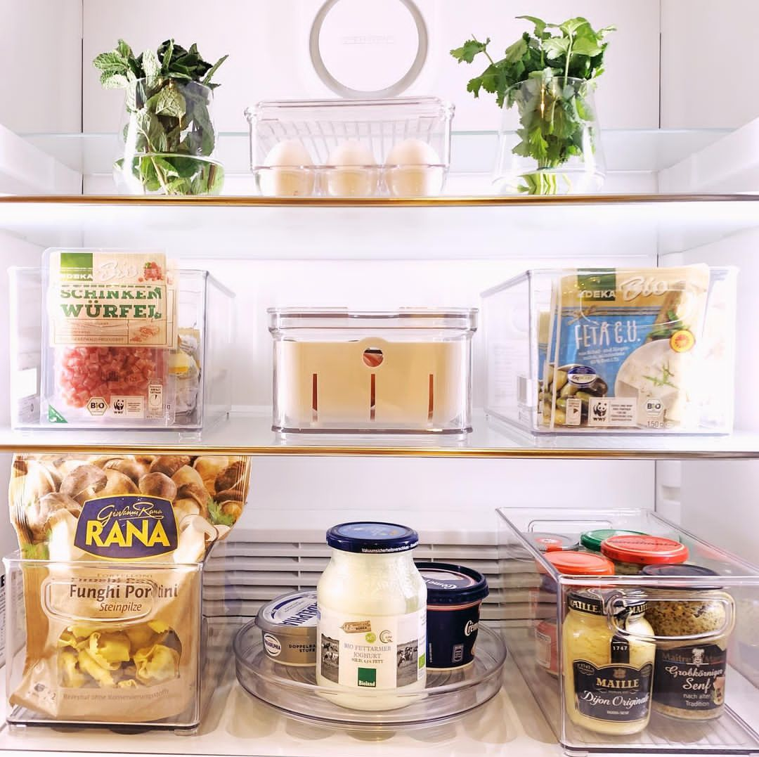 Супер, когда можно выбрать бытовую технику, которая полностью подходит. Например, выбирая холодильник, нужно учитывать много нюансов: стоимость, внешний вид, размеры, мощность, дополнительные функции заморозки и многое другое. Мы всегда выбираем что-то на 80-90% подходящее и идем на компромиссы. А иногда живем с тем, что есть. Это особенно актуально для съемного жилья - в ситуации, когда нужно пользоваться техникой, которую выбрал кто-то другой. Но обустроить удобное пространство внутри холодильника всегда можно. Это обеспечит не только красивый и упорядоченный вид, но и поможет дольше и надежнее сохранить продукты. С помощью продуманной организации пространства можно сделать так, чтобы холодильник быт удобен и вам, и продуктам. 1. Обратим внимание на высоту полок. Не всегда мы используем все пространство между полками на 100%. Чтобы оно не пустовало, создайте дополнительные места для хранения. Подвесные органайзеры разной глубины, которые крепятся к полке холодильника, создадут целы