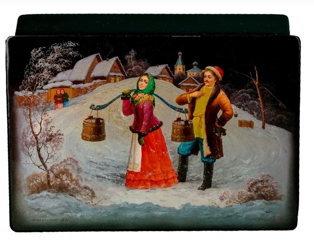 Федоскино одно из старейших сел Московской области. Здесь впервые в России в 1795 году была основана лаковая мануфактура. Первыми мастерами в Федоскино были иностранцы, а первыми изделиями из папье-маше – лаковые козырьки для армейских киверов и табакерки для нюхательного табака. Папье-маше делается из древесного картона, который проходит много различных операций, оклеивается крахмальным клейстером, проваривается на заготовки и покрывается многослойным лаком. Материал получается необыкновенно прочным. Крышки изделий расписывались пейзажами и бытовыми сценками. Роспись велась колонковыми кисточками масляными красками. Позднее П.В. Лукутин расширил это предприятие и в качестве художников стал привлекать крепостных крестьян, которые превзошли иностранных мастеров. В течение целого века существовала эта фабрика. Работающие на ней народные мастера применяли некоторые своеобразные живописные приемы росписи, привнесли в лаковую миниатюру свое понимание композиции и цвета, народную меткость и