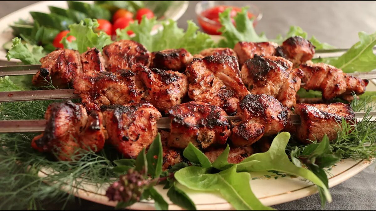 Шашлык, приготовленный по этому рецепту, всегда получается удачным. Но каких-то особенных изысков вкуса ждать не стоит – мясо не потеряет своего природного аромата, но получится мягким и сочным. Для приготовления шашлыка лучше всего подойдет свиная шея. Ее моют, промакивают бумажным полотенцем и нарезают кусками среднего размера. Для шашлыка на шампурах оптимальный размер кусочков – 3х3см. Если готовить планируется на решетке, то удобнее сделать стейки. Лук режут кольцами и немного мнут с солью, кладут в кастрюлю с мясом, перемешивают. Мясо немного взбрызгивают винным уксусом (не более 0,5 ч.л. на весь объем). Он не такой кислотный, как столовый, поэтому не изменить структуру волокон мяса, но придаст шашлыку приятную кислинку и тонкое послевкусие. После того, как в емкости с мясом появится свободная жидкость, шашлык солят, перчат и добавляют в него лимонный сок. Миску с маринованным мясом отправляют на несколько часов в холодильник. За это время маринада станет почти в два раза меньше