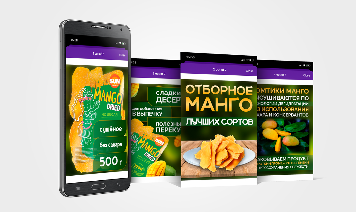 В качестве фонового изображения были добавлены “размытые” деревья манго, что вызывает ассоциацию с натуральностью продукта.