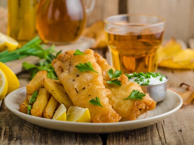 Ингредиенты Метод приготовления (рецепт) Смешать в миске муку с пивом до получения однородной массы без комочков, посолить по вкусу, приправить перцем. Отделить желток от белка. Добавить желток в кляр, дать тесту настояться примерно 15 минут. Сливочное масло растопить, остудить, вмешать венчиком в тесто. Яичный белок взбить до устойчивой пены, аккуратно ввести в кляр. Рыбное филе нарезать на небольшие кусочки, обсушить бумажным полотенцем, приправить солью и перцем. Разогреть масло для фритюра до температуры 170 Grad Celsius Цельсия. Частями обмакивать рыбу в кляр и опускать во фритюр, обжаривать в течение примерно 5 минут и выкладывать на бумажное полотенце, чтобы впитались излишки жира.