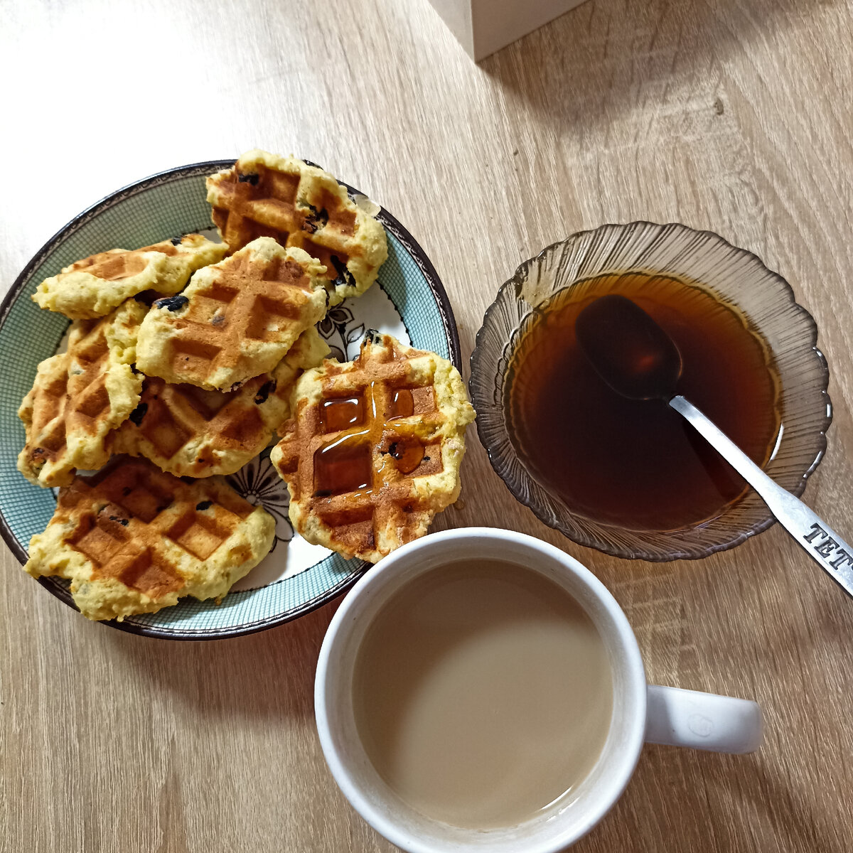 Всем доброго утра , Я что-то сегодня недомогаю, у старшего сына температура 39, младший кашляет ,как заядлый курильщик . Аппетита совсем нет, но кушать нужно. На завтрак приготовила банановые венские вафли , кофе с молоком и гречишный мед. Рецепт вафель: 1 банан, 1 яйцо, соль, сахзам, мука кукурузная , разрыхлитель и изюм по желанию 🤗Все хорошего дня !
