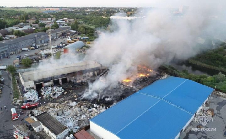 Более шести часов понадобилось для ликвидации крупного пожара на складе с макулатурой под Ростовом