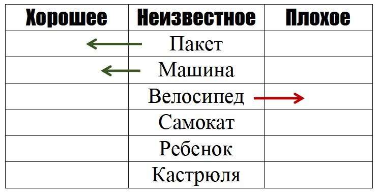 Страх - это очень важное чувство. Все животные, которые его не испытывали, вымерли. Он оберегает нас от повреждений и смерти. Бояться высоты или змей вполне логично. Но что на счет страха пылесоса, велосипеда или людей с зонтиками? Примерно до 4 месяцев у щенков идет период активной социализации. Что это такое? В голове собаки находится табличка с тремя столбцами: Хорошее, Неизвестное, Плохое. Постепенно, при знакомстве с миром, малыш из графы Неизвестное распределяет вещи по двум другим столбцам. - Ага, это «пакет», из него достают вкусные продукты. «Пакет» это «Хорошее». - Так, а это «машина», меня в ней возили гулять в большой парк. «Машина» это «Хорошее». - А вот это «Велосипед», он резко и неожиданно пролетел мимо меня. «Велосипед» это Плохое. Колонки «Хорошее» и «Плохое» закрепляются в сознании собаки на всю жизнь. А те оставшиеся предметы из колонки «Неизвестное» автоматически переезжают в «Плохое». Почему так??? Представьте, что на соседней улице приземлилась летающая тар