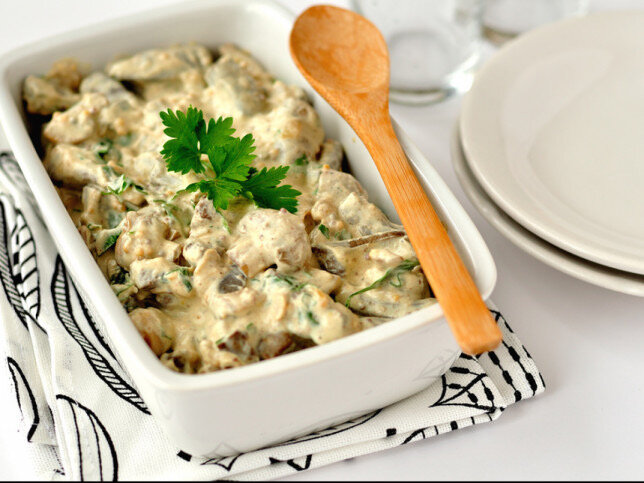 Печень по-строгановски — вариант популярного русского блюда бефстроганов. Бефстроганов имеет второе название: говядина по-строгановски. Это когда кусочки говядины сначала обжаривают, а потом тушат в сметанно-томатном соусе. Это очень популярное в России блюдо. И потому со временем стали появляться разнообразные вариации. Один из них — печень по-строгановски. В этом случае говядину заменяют на говяжью или куриную печень. Главный секрет в том, что готовится печёнка очень быстро и нужно постараться её не пересушить. Ингредиенты Метод приготовления (рецепт) Печенку помыть, обсушить и аккуратно удалить все плёнки и крупные сосуды. Нарезать печень продолговатыми кусочками 1 см шириной, длина кусочков может быть произвольной. Уложить кусочки печени в глубокую тарелку, посолить и поперчить. Добавить муку и перемешать, чтобы кусочки как бы запанировались в муке. Во-первых, эта панировка создаст корочку и защитит мясо во время приготовления. Во-вторых, мука в дальнейшем загустит соус и сделает е