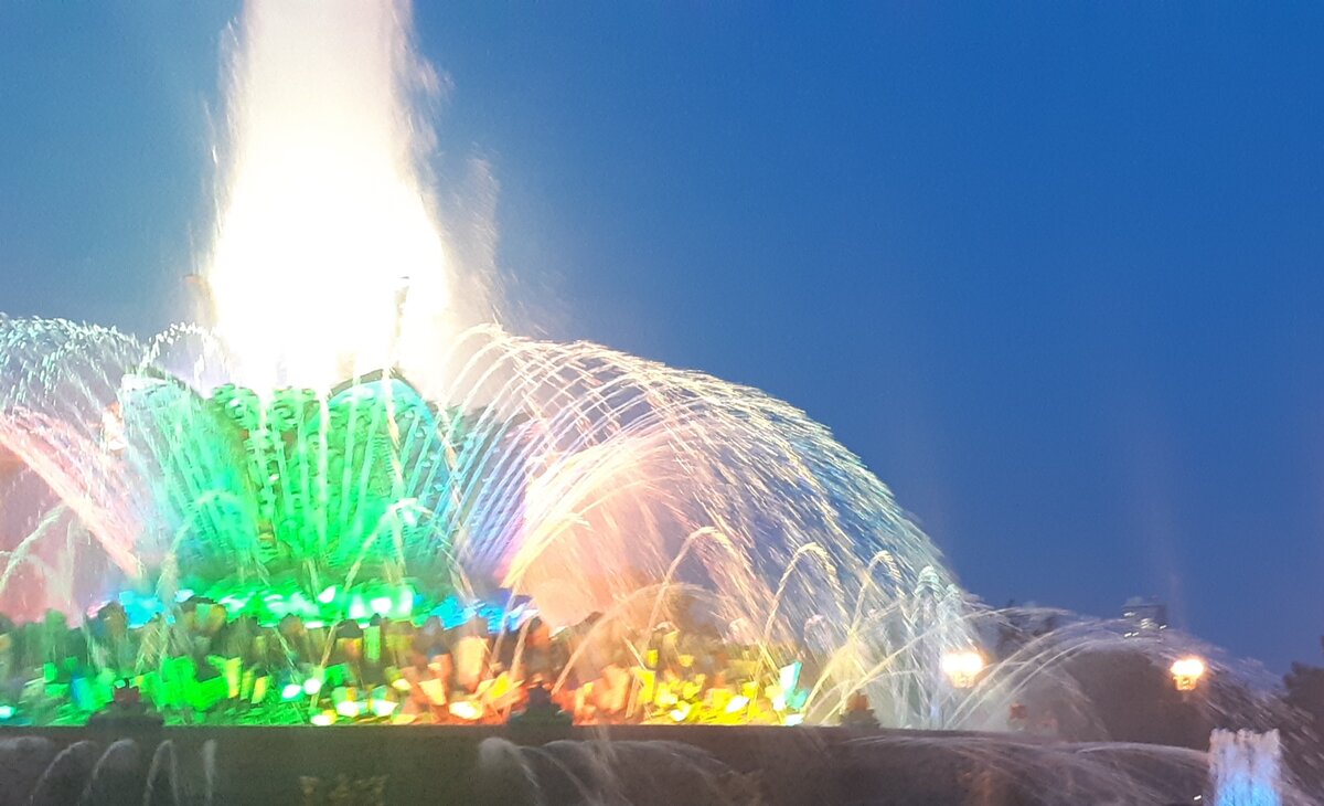 Июль, разгар лета! Солнечный, тёплый день, а значит можно смело отправляться на прогулку. В Москве очень много мест, куда можно отправиться всей семьёй. Сегодня мы поедем на ВДНХ. Дорога у нас займёт примерно 40 минут на метро и мы на месте. ВДНХ с одной стороны представляет собой один из многих районов Москвы, однако именно там достаточно много парков, смотровых площадок и даже можно сесть и прокатиться на речном трамвайчике. Денежные затраты небольшие, поэтому посетить можно сразу несколько мест. Недалеко от метро, пройдя минут пять пешком, вход в парк. Пройдя по главной аллее нам встречаются красивейшие фантаны. Встречаться они нам будут ещё не один раз. Вечером, вокруг этих фантанов включается подсветка. Смотрится грандиозно. Приезжать сюда можно только из-за них, особенно вечером. Очень красиво! В выходной день народу очень много, многие хотят погулять, насладиться великолепием интересных конструкций, немного охладиться около фантанов. Мы прекрасно провели время и вам советуем!