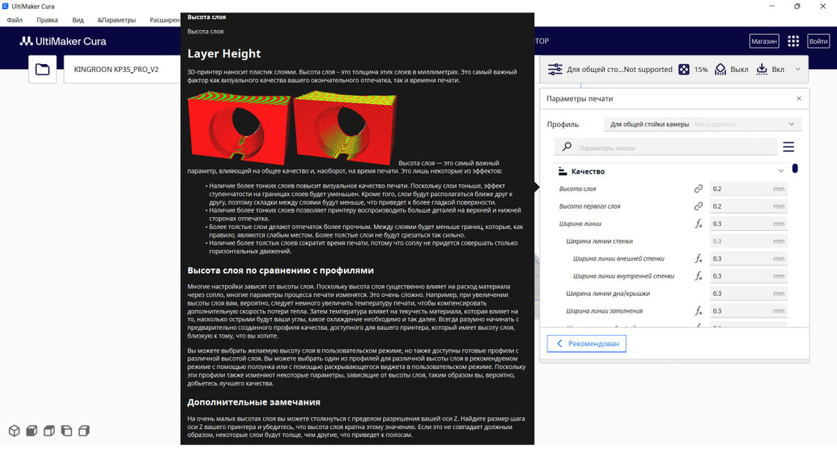 Работает просто и удобно. В CURA наводишь мышку на функцию, появляется подробная справка по этой настройке.