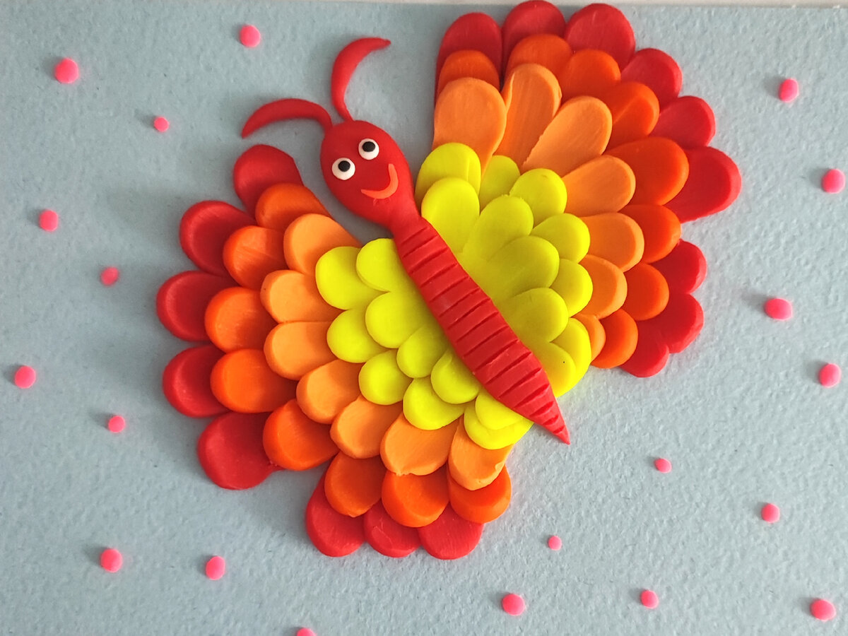 Аппликации из пластилина на цветном картоне " Красивая 🦋 бабочка". Пошаговая инструкция с фото для детей.