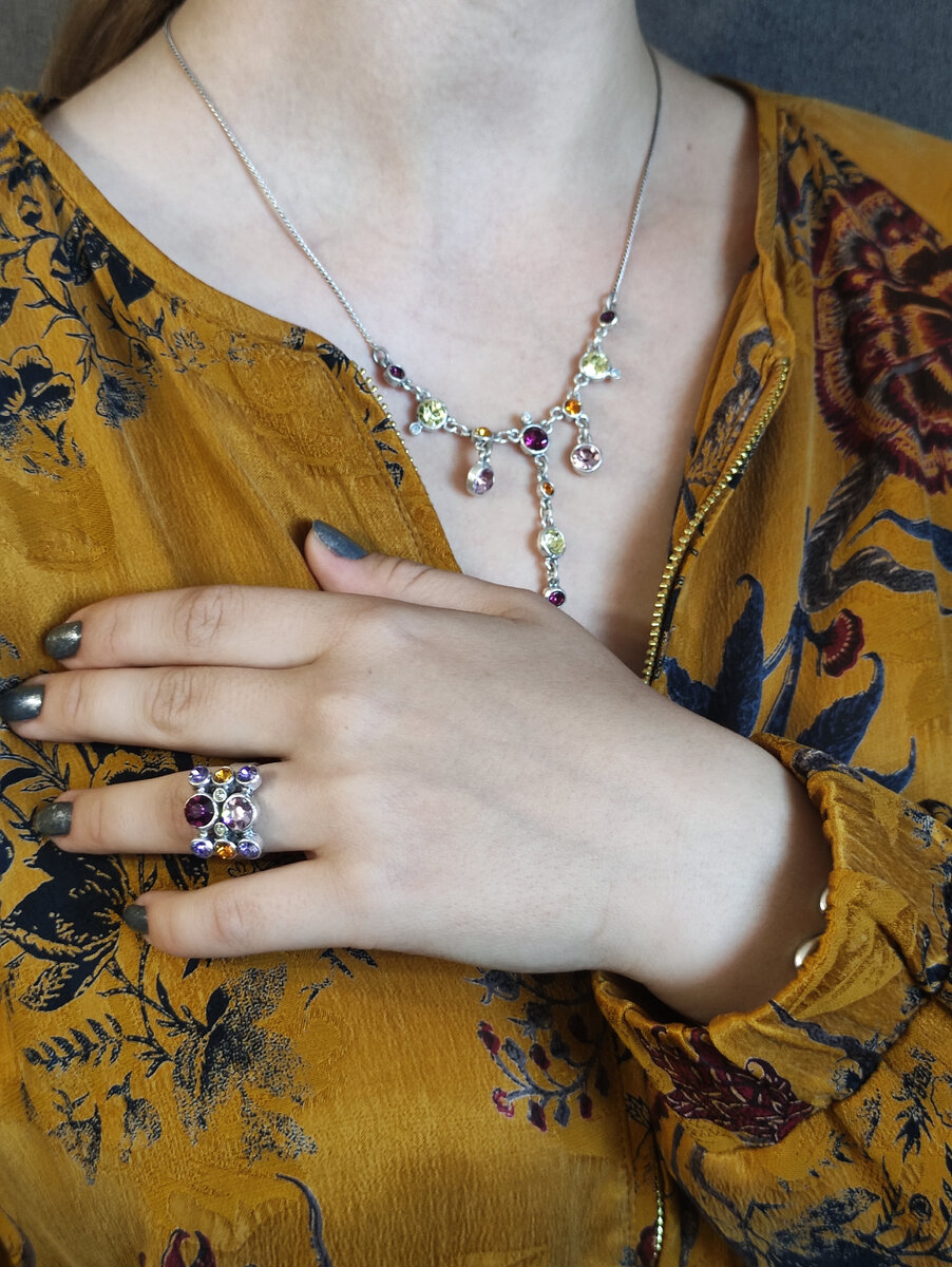 Вспышки лета 💥 Всем привет! Меня зовут Ирина, добро пожаловать на мой канал! ---------------------- Сегодня у меня снова для Вас подборка роскошных украшений от норвежского бренда "Arts & Crafts" – из раздела сток. Напомню – "Arts & Crafts" скандинавский бренд, который делает прекрасную атмосферную бижутерию с большим вниманием к деталям. И первый комплект из коллекции "Funky Cristals" – "Озорные кристаллы". И действительно – они озорные, веселые и летние! Колье с разноцветными кристаллами игриво переливается на солнце. К нему идет кольцо с такими же разноцветными круглешками. Что еще нужно для легкого летнего образа? ---------------------- Конечно цветы! Роскошная коллекция с маками. На бронзовой змеевидной цепочке расположился цветок, декорированный эмалью и кристаллами. Цветочки помельче продолжают летнюю историю. Каждый листик украшен полоской мелких кристаллов. ---------------------- Нежная фиалка. Деликатный комплект с браслетом и искорками солнца в виде желтых кристаллов. -
