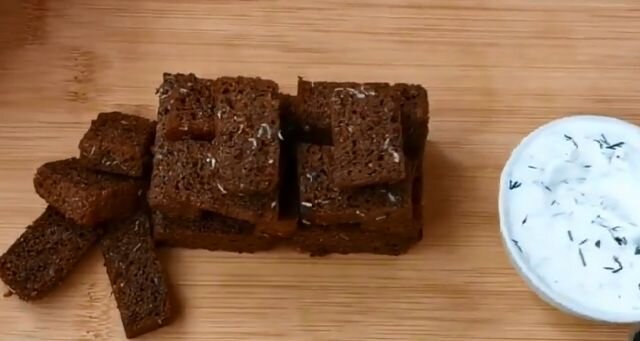 Хочу представить восхитительный рецепт чесночных гренок из черного хлеба, которые приготовлены в духовке. Это отличный способ превратить обычный хлеб в источник удовольствия, добавляя ему аромат чеснока и хрустящую текстуру. Эти гренки обладают насыщенным вкусом и неповторимым ароматом. Сочетание чесночного масла, прованских трав и хрустящего хлеба создает незабываемую комбинацию, которая просто тает во рту. И чтобы завершить этот кулинарный шедевр, мы приготовим нежный соус из сметаны с добавлением свежего укропа, который идеально дополнит вкус этой закуски. 🔥 Лучшее в телеграм: Посмотреть Ингредиенты: Для соуса: Способ приготовления: Шаг 1. Нарежьте бородинский хлеб на ломтики, срежьте грубые края. Нарежьте брусочками. Шаг 2. Приготовьте чесночную заправку. Натрите на мелкой терке зубчики чеснока или пропустите их через пресс. Добавьте к нему прованские травы и растительное масло, перемешайте. Шаг 3. Сложите гренки в целлофановый пакет, добавьте соль мелкого помола и чесночную запра