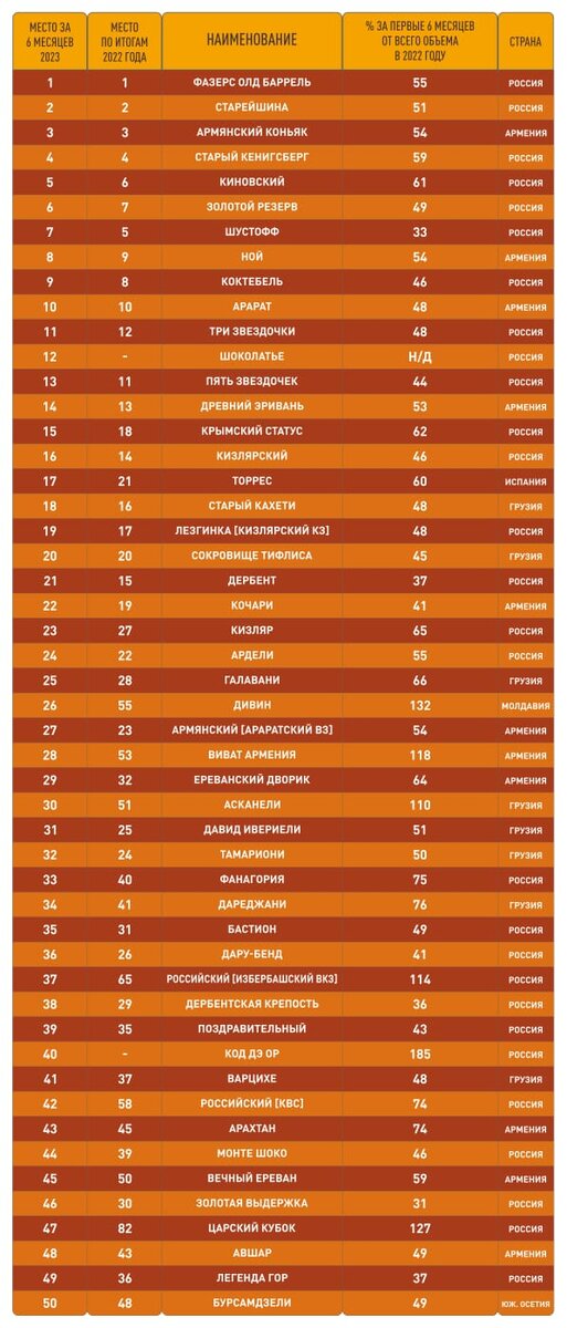 Коньяк ТОП 50 в 2023 году. Результаты продаж за первые 6 месяцев 2023 года.