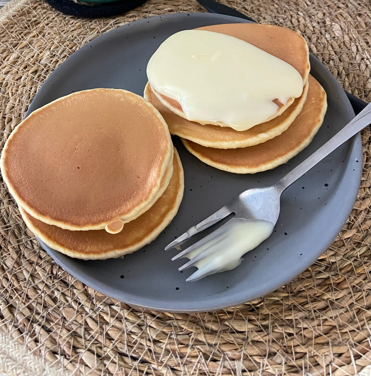 Начну, пожалуй, с своего фирменного блюда. Это - панкейки. Кто не знает, это такой гибрид блинчиков-оладий, в стиле американских придорожных кафе, я хотел их попробовать еще со времен старого доброго Тома И Джерри. Ни в коем случае не претендую на уровень «босс готовки», но порадовать близких и себя почему бы и нет? Сразу скажу, буду рассказывать, как все это делаю лично я. Время приготовления: 30-40 мин. Перейду к ингредиентам, ты же наверняка хочешь сразу знать что тебе потребуется 😬 и так: Еще понадобится большая посудина, где ты все это дело будешь замешивать, венчик, блендер или миксер, ложка (большая столовая и любая другая) чтоб все эту красоту наливать, лопатка, чтобы переворачивать, и самое главное, это приличная сковорода. Лучше всего антипригарная. P.S. Еще неплохо было бы иметь кухонные весы или мерный стакан, но можно и на глаз, из расчета что 1 стакан или обычная кружка это как раз 200гр. А столовая ложка с небольшой горкой это примерно 15гр. Перед началом готовки теста