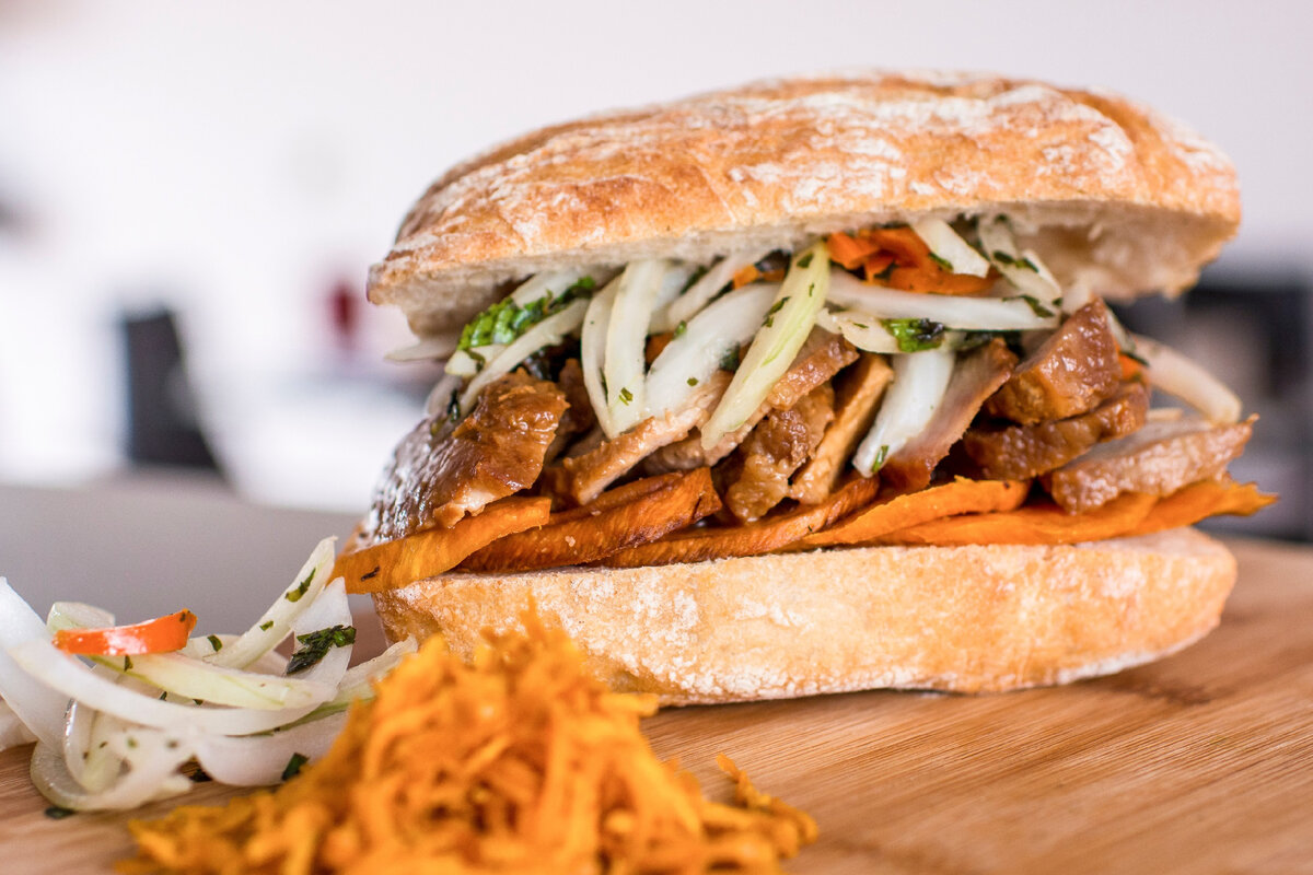 Сэндвичи являются популярным и удобным вариантом перекуса. Они могут быть разнообразными и вкусными, а один из таких вариантов - легкий сэндвич с курицей, апельсином и медом. Этот сочный и ароматный сэндвич идеально подходит для легкого обеда или перекуса, и его приготовление не занимает много времени. Давайте рассмотрим рецепт этого вкусного блюда. Ингредиенты: Шаги приготовления: Секреты и рекомендации: Энергетическая ценность сэндвича с курицей: Энергетическая ценность сэндвича с курицей может варьироваться в зависимости от используемых ингредиентов и их количества. Однако, примерно на один сэндвич с курицей (из двух ломтиков хлеба) приходится около 250-300 калорий. Общая энергетическая ценность может быть изменена в зависимости от размера порции и способа приготовления. Приятного аппетита! Вам также может понравиться: Котлеты по министерски из куриного филе Рецепт классических драников Топ-5 кулинарных лайфхаков Новая неделя – новое меню! 60 блюд на выбор. Успейте заказать всё само