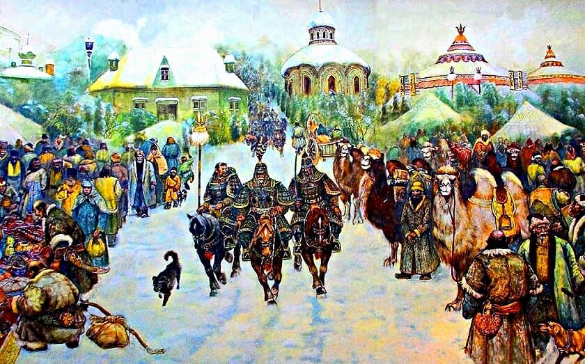 Ещё одной тяжёлой повинностью для русского народа стала обязанность направлять воинов в монгольские войска и обязательно принимать участие в их военных походах. Во второй половине XIII века русские полки в составе ордынского войска участвовали в сражениях против Венгрии, Польши, народов Северного Кавказа, Византии. Ну а за отказ платить дань (выход) или же за другую непокорность хану, монголы отправляли на Русь свои рати. Они жестоко расправлялись со всеми русскими землями, лежавшими на их пути. Тем не менее русский народ не потерял надежды освободиться от злых монголов. Поэтому восстания были очень часто. И каждый раз монголы всё разрушали. Наконец, через некоторое время, князья, да и весь русский народ понял, что лучше подчиниться ордынскому хану и восстановиться после частых нашествий, чтобы восстановить самостоятельность. В 1245 году в Орду был вынужден явиться галицко-волынский князь Даниил Романович. И хотя его княжество в меньшей степени пострадало от нашествия Батыя, он