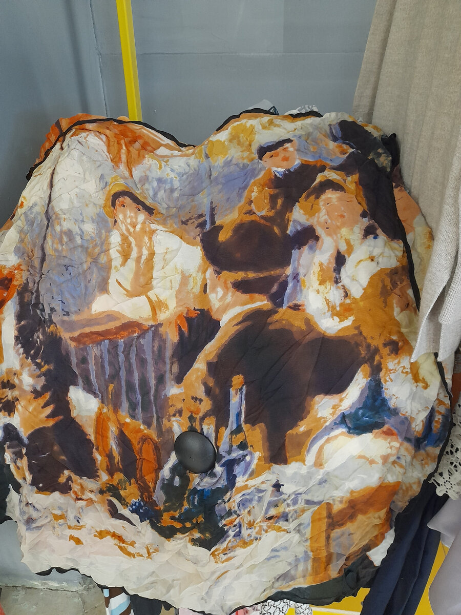 В последнее время меня потянуло на платки и шарфы. Люблю аксессуары, сумки менять, ремни. А платочки и шарфики очень оживляют образ. Поэтому в новом Зигзаге пошла посмотреть и их тоже. Не надеялась на что-то особенное (скидка была 10%), но в результате откопала несколько очень интересных экземпляров. Шелковый платок с сюжетом: Я не эксперт в живописи, это скорее всего, с картины какого-то художника. Пикничок на природе, мягкие краски. Ярлычка не было, ни производителя, ни состава. Хотя на ощупь угадывается шелк. Покупать не стала, в свернутом виде смотрится не очень, а как картину носить не будешь. Следующая находка - палантин с морской тематикой: Можно рассматривать как аквариум: Шифоновый шарф с восточным сюжетом: Состав - полиэстер. Но это только то, что интересно посмотреть. А вот это была настоящая находка: Великолепный палантин из пашмины и шелка: Пашмина - это материал из 100 % пуха кашемировых коз без каких-либо добавок шерсти и иных материалов. Именно изделия 100 % пуха кашем