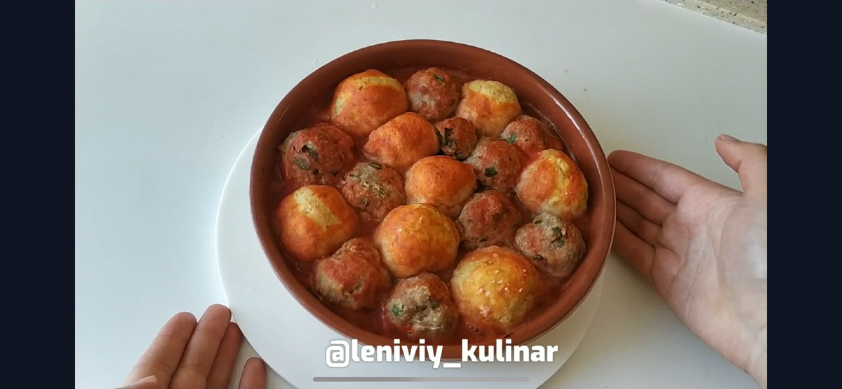"Ленивый кулинар" с вами и мы снова готовим самые вкусные и ленивые блюда. Не забудьте подписаться на наш канал, будем ленивокулинарить вместе. Приготовим сегодня замечательный ужин В фарш (300 г) добавляем измельченный в блендере лук (100 г) и пару зубчиков измельченного чеснока . Добавляем рубленную зелень и 50 г панировочных сухарей . Солим по вкусу и перемешиваем . К отварному картофелю (300 г) добавляем яйцо . Добавляем зубчик измельченного чеснока, соль по вкусу и сушеный розмарин по вкусу . Разминаем толкушкой в пюре . Добавляем 50 г панировочных сухарей . Перемешиваем . Катаем шарики из обеих смесей . Выкладываем в форму смазанную маслом . Заливаем томатным соусом. Можно сразу взять готовый, а можно смешать пару столовых ложек томатной пасты и 150 мл воды . Отправляем блюдо в духовку на 40 минут при 180С . При подаче можно сверху полить шарики томатным соусом Приятного аппетита!