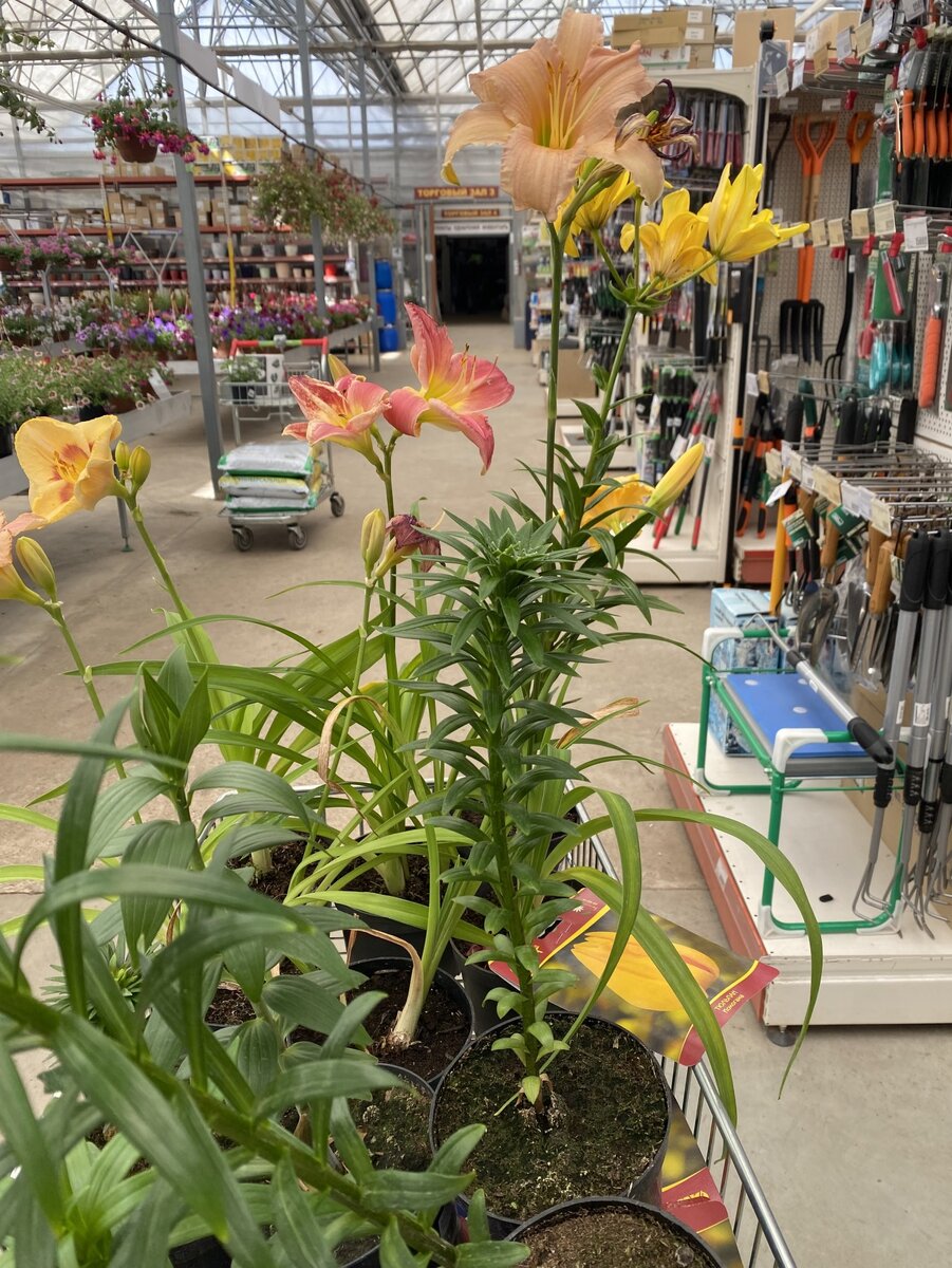 Заехав в садовый центр за средствами для луковичных, я ожидаемо уехала с тележкой цветов. В июле цветочный ажиотаж стихает и многие цветы можно купить дешевле, чем в начале сезона. На распродаже в интернет-магазине в июле были луковицы лилий от 69 руб., но я сомневалась, что растение успеет хорошо прижиться и успешно перезимует, поэтому покупку лилий отложила на следующий год. А тут в магазине уже цветущие лилии и лилейники по приемлемым ценам - пересорт около 200 руб. за цветок. Лилейники я как раз в этой категории и набрала. Плюс такой поздней покупки - уже видно какой будет цветок. Лилии же выбирала более сознательно. Купила две лилии Изи: Изи Ванилла и Изи Дрим. Отличительная особенность линии сортов Изи это отсутствие пыльцы, растения гипоаллергены. Из восточных гибридов приобрела Жозефину, из азиатских - Куритиба, Тренди Дакота, из ла-гибридов - Кент. Пока не зацвели, фото выкладывать нет смысла. Набрала тюльпанов по 95 руб., разница в цене с интернет-магазином была в пользу це