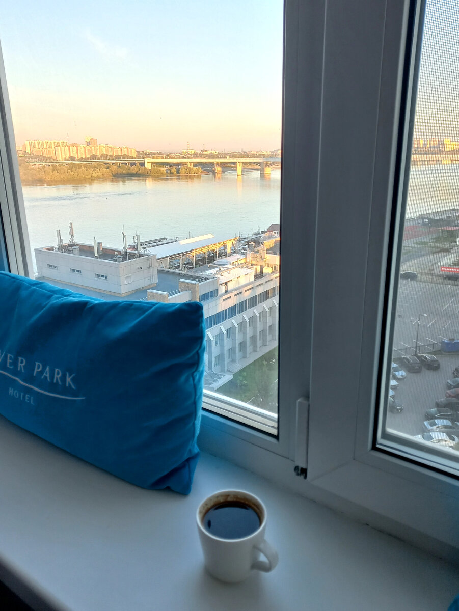 Вид из окна просто прекрасный . Очень романтично . Настроение конечно же замечательное . Правда с утра было довольно хмуро и шел дождь , который чуть было не спутал дальнейшие планы . Но летние дожди тем и хороши , что быстро проходят , а на смену им приходит солнце и тепло . А как замечательно выпить чашку кофе в постели с видом на реку ...а можно и сидя на широком подоконнике с мягкой подушкой . Здесь мне вспомнились подоконники в старых домах -отелях Петербурга , вот там такая ширина , что можно и спать , и есть , и разместить все имущество )