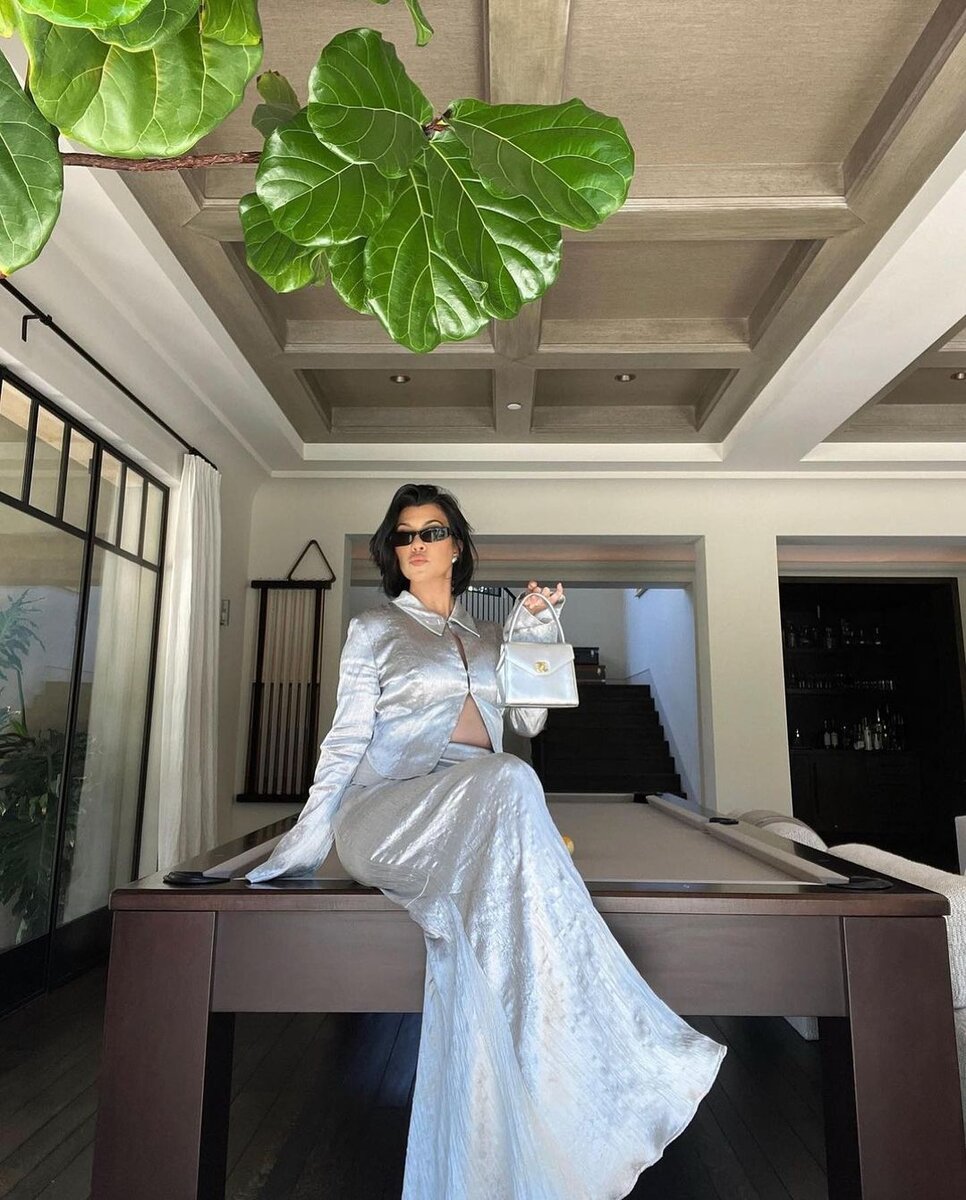 Кортни Кардашьян поделилась в социальных сетях фото в костюме российского бренда Sorelle. 44-летняя беременная звезда реалити-шоу «Семейство Кардашьян» предстала перед камерой в серебристом комплекте из юбки и рубашки. Айтемы можно найти на сайте российского бренда, каждый из них стоит 14 300 рублей. Кардашьян дополнила образ серебристой миниатюрной сумкой и солнцезащитными очками. Кортни неоднократно носила вещи Sorelle, в частности снялась в рекламе жевательных конфет для вагинального здоровья в тренче российского бренда. Бренд Sorelle был запущен в 2017 году дизайнером Верой Холмовой. Он вдохновлен эстетикой золотой эры культа топ-моделей конца 80-х – нулевых, когда в моде был сложный крой и дорогие ткани.