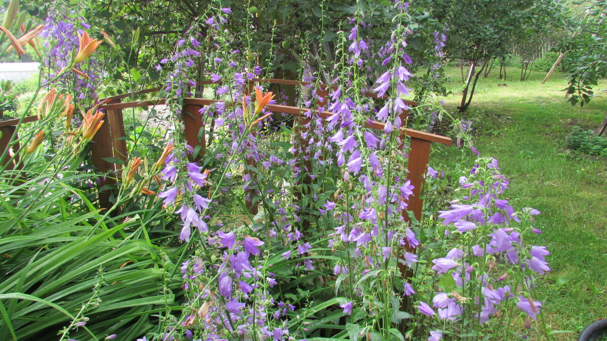 Прежде рос у меня один сорт, этакий сиреневенький агрессор. Мгновенно разбежался по всему огороду. Большой любви у нас с ним не получилось. Мы то противостоим друг другу, то мирно сосуществуем. Повыдергиваю его в одних местах, оставлю в других – так и живем. Что ни говори, а он все-таки красавчик. Особенно при ближайшем рассмотрении. Колокол, да и только. А звучит-то как – Campanula! Но на другие сорта колокольчиков я уже не заглядывалась, хватит с меня и этого. Все-таки необходимость бесконечного противостояния напрягает слегка. И вдруг недавно встречаю я в соседнем селе удивительный колокольчик – крупный, красивый, в розовую крапинку. И с поникающими цветками. Таких я еще не видела. Вот уж поистине колокол! Campanula! Бабулечка, его продававшая, заверила, что он не так уж сильно «бегает», но лучше все-таки ограничить его в пространстве. Не устояла я! Купила! Интернет подсказал, что это коло