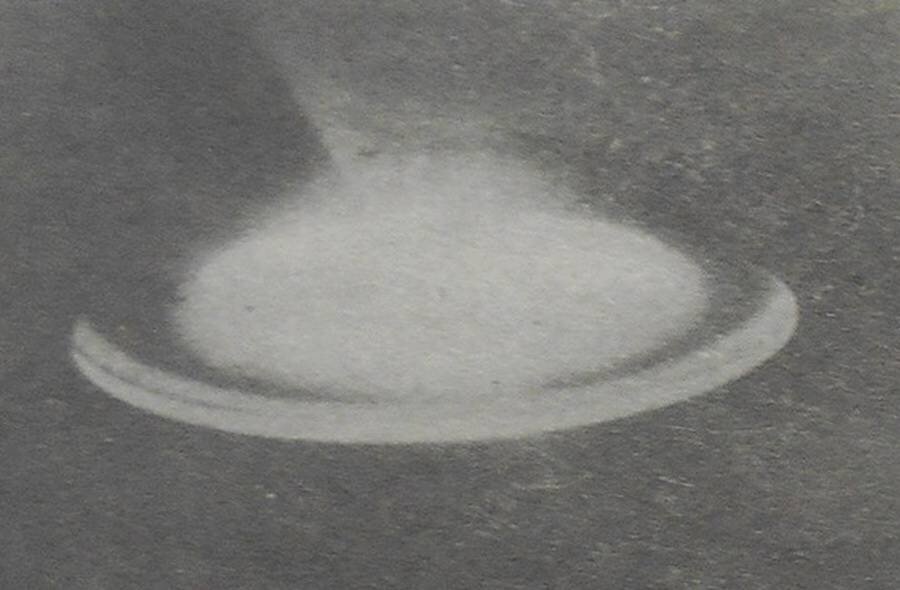 Этот снимок сделан в районе центрального рынка 15 марта нынешнего года сочинским подростком, девятиклассником 7-й школы. Он просил не называть свою фамилию, потому что боится насмешек приятелей. Еще бы – ведь кто угодно может заподозрить его в подлоге, в фальсификации… Я рассматривала пленку – он фотографировал Луну и во время съемок ничего странного на небе не видел, а когда проявил, несколько кадров оказались пустыми, зато на одном появилось вот это изображение. Небосвод хранит немало тайн и загадок. Наиболее любопытный феномен – это НЛО. По имеющимся у нашего уфоцентра сообщениям, в районе горы Ажек, в верховьях реки Сочи, есть аномальная зона. Многим жителям нашего города довелось наблюдать здесь летающие объекты. Так, действительный член Географического общества РАН Б. Тарчевский еще в 1967 году видел с берега реки Сочи огненный шар, пролетавший над Кавказскими горами по направлению на север. Шар был светло-желтого, почти белого цвета. Летней ночью 1969 года Тарчевский с того же м