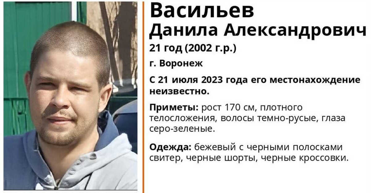 Поиски 21-летнего Данила Васильева, нуждающегося в медпомощи, начали добровольцы в Воронеже. Как рассказали в поисковом отряде «Лиза Алерт», парень 21 июля ушел из дома в Железнодорожном районе. Сообщается, что он может быть в любом месте Воронежа. Данил Васильев ростом 170 см, телосложения плотного, глаза серо-зеленые, волосы темно-русые. В день пропажи на нем были черные кроссовки, бежевый свитер с черными полосами, черные шорты. По телефону горячей линии отряда 8-800-700-54-52 или по номеру 112 могут обращаться те, кто обладает информацией о местонахождении парня. Ранее "Горком36" писал, что 354 человека остаются пропавшими без вести в Воронежской области. Среди них четверо несовершеннолетних.