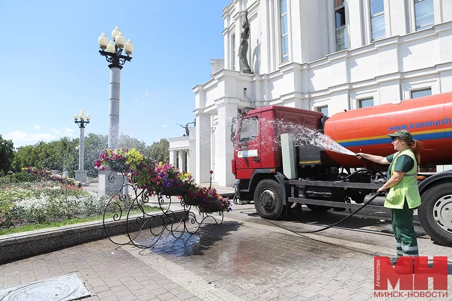 Сколько кубометров воды нужно, чтобы полить клумбы у Большого театра, и почему дороги ремонтируют летом, выяснила корреспондент агентства «Минск-Новости».