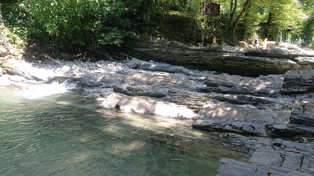 Красивое место, долгое время создаваемое природой, расположено в Лазаревском районе г.Сочи. Мы ехали на машине от г. Лоо до Дагомыса, потом указатель на Солохаул и Альтмец. Ехали от центра Лоо примерно полчаса с пробками. Корыта – это комплекс небольших водоемов на реке Западный Дагомыс. Здесь прозрачная прохладная вода перетекает из одного водоема в другой. Многочисленные водопады создают большой поток воды, из-за этого образовались уступы и гребни, которые похожи на корыта. Когда мы приехали, за вход в кассе мы заплатили по 100 р., дети шли бесплатно, на нас надели браслеты, мы спустились по ступенькам, и нам открылась красота. В корытах были люди, они плавали, лежали и наслаждались. Один мужчина мне рассказал историю, больше похожую на сказку: жил один великан, жил он хорошо и счастливо. И к нему в водоем стали приходить девушки, они стали стирать. Девушки нарушили покой великана. Его это очень раздражало. И он от злости взял землю и как всколыхнул ее! И все водоемы разделились н
