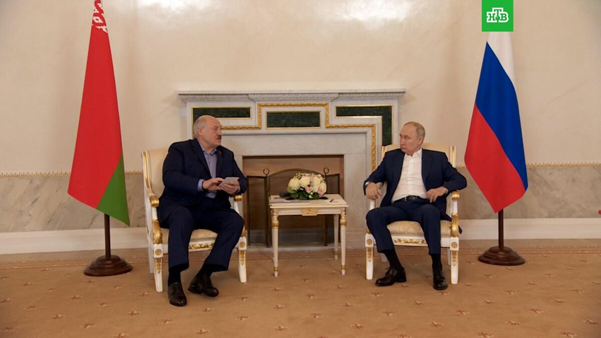 Путин сообщил Лукашенко о провале контрнаступления ВСУ [ Смотреть видео на сайте НТВ ] Владимир Путин и Александр Лукашенко проводят переговоры в Константиновском дворце, расположенном в Стрельне под Санкт-Петербургом. В начале встречи Александр Лукашенко отметил, что контрнаступления Украины нет. Владимир Путин в ответ на это уточнил, что «оно есть, но оно провалилось». Лукашенко прибыл в Россию для переговоров с Путиным накануне. Сообщалось, что лидеры двух стран планируют обсудить вопросы безопасности, реализацию союзных программ, совместное противостояние санкционному давлению, а также ситуацию с группой «Вагнер». Российский лидер уточнил, что нынешние переговоры с Лукашенко продлятся два дня. [ Смотреть видео на сайте НТВ ]