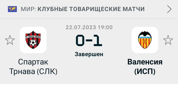 Привет друзья. Сегодня я разберу для вас товарищеский матч между командами Спартак Трнава и Валенсия. Клубы ранее никогда не играли между собой. Невзирая на то, что Спартак Трнава представляет чемпионат Словакии, который даже не входит в топ - 5 лиг Европы многие любители футбола знают этот клуб по выступлениям на групповом этапе Лиги Чемпионов и лиги Европы в сезонах 2016 - 2017 и 2017 - 2018. Если говорить про вчерашний матч, то в первом тайме Валенсия ожидаемо владела инициативой. Оно и понятно. Ведь чемпионат Испании входит в топ - 5 лиг Европы и по уровню игры он естественно гораздо сильнее чем чемпионат Словакии. На 19 минуте матча Спартак Трнава заработал пенальти из - за игры рукой капитана Валенсии Хосе Луиса Гайя в своей штрафной площади. К счастью хозяева поля не реализовали этот удар. Вратарь Валенсии Кристиан Риверо отразил удар соперника. Спустя 6 минут пенальти был назначен уже в пользу Валенсии. Его успешно реализовал Альберто Мари. До перерыва Валенсия продолжала владе