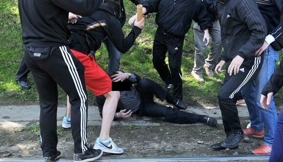 Когда подростки обернулись, на них сразу же налетели. Нападавших было около 11 человек." Подобные сообщения есть во многих других источниках.