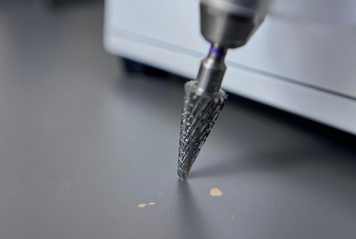 К сожалению, это проблема большинства профессиональны аппаратов для маникюра и педикюра. Держатель ручки устанавливается под удобный и надежный угол, но, когда мастер ставит ручку не дожидаясь полной остановки фрезы, она пропиливает стол.