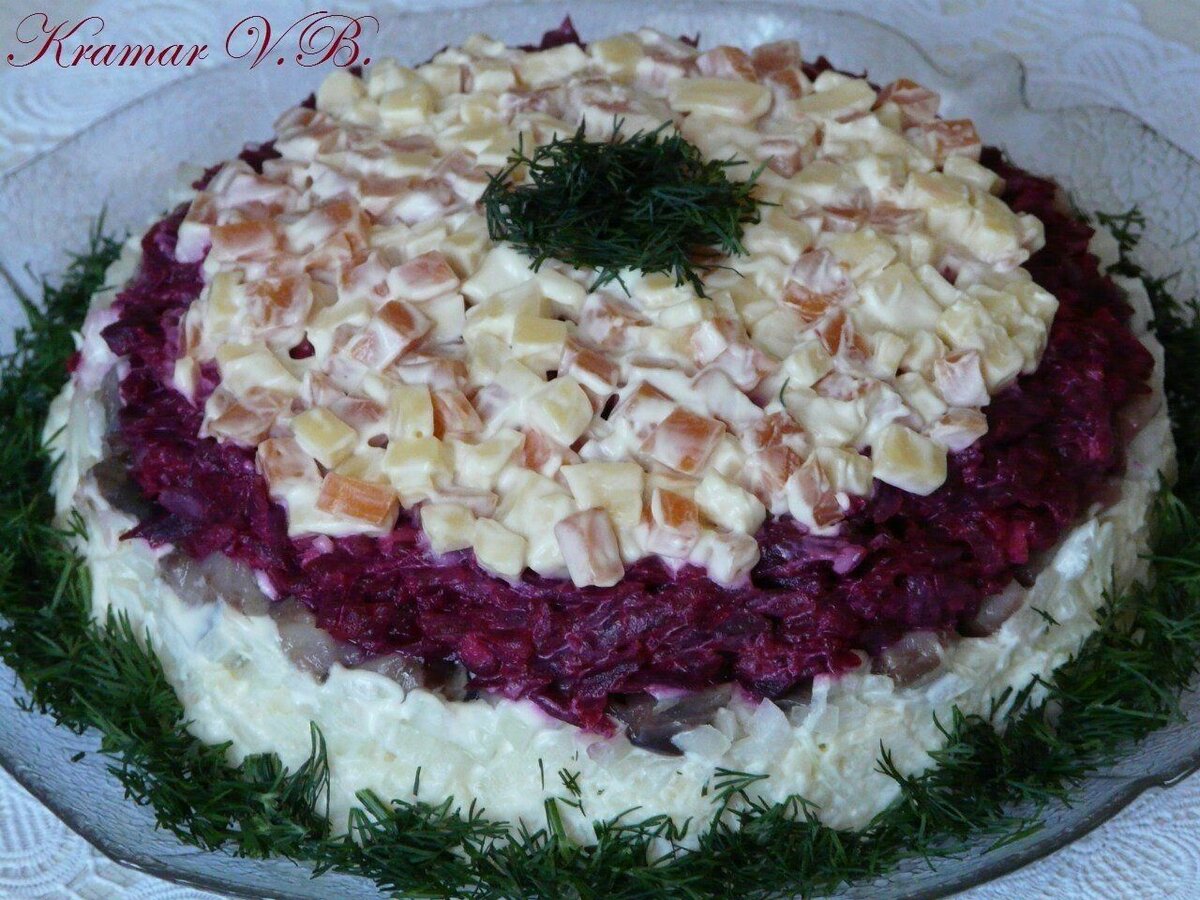 #рецепт Салат "Наваждение" Этот рецепт – хорошая альтернатива салату "Селёдка под шубой". Нам потребуется: 1 баночка филе селедки 200гр. 2 шт. картофеля 1 луковица 1 свекла 1 морковь 100 г сыра майонез соль чеснок зелень Приготовление: Картофель, морковь, свёклу отварить, охладить, очистить. Лук мелко порубить, чеснок раздавить. Филе селёдки порезать мелкими кусочками. Подготовить смешанные слои (я делала на отдельных тарелочках, так удобнее выкладывать). Натертый картофель солим и смешиваем с майонезом.Натертую свеклу смешиваем с чесноком, солим, затем смешиваем с майонезом. Сыр и морковь нарезаем кубиками, чуть-чуть солим и смешиваем с майонезом. Теперь собираем салат по слоям: - картофель - лук - филе селедки - свекла с чесноком - морковь с сыром - Украсить салат зеленью. Приятного аппетита!