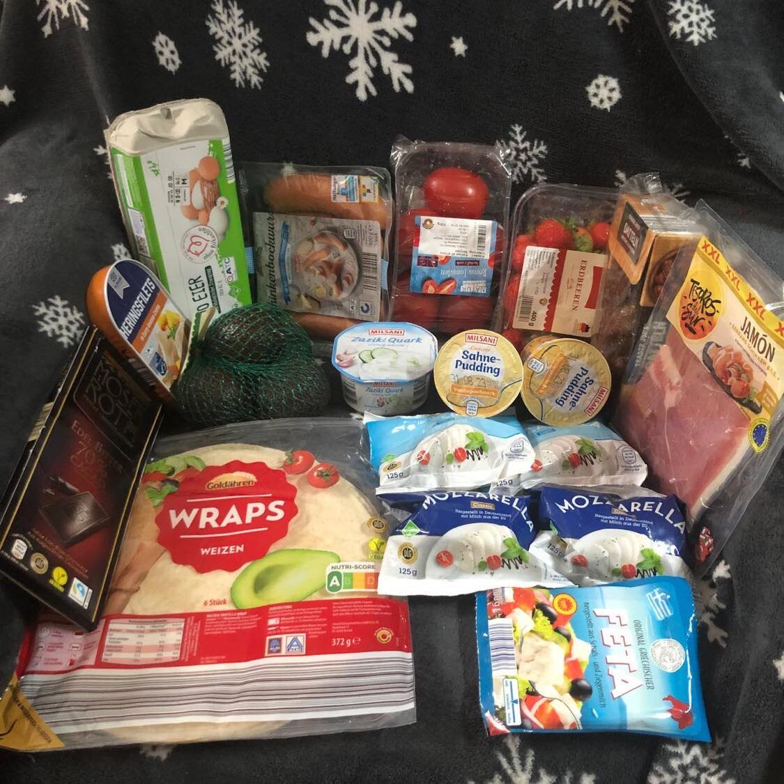 Всю неделю идут дожди, самочувствие не айс, но "голод не тётка" - в среду взяла себя в руки и отправилась в Алди за продуктами. В этот раз решила расширить ассортимент покупаемых продуктов. Что купила, видите на фото, а цены озвучиваю: Клубника 400 гр - 3,39 Клубника немецкая, не очень красная, но удивительно ароматная и сладкая. Свиные сардельки 500 гр - 3,99 Их уже брала, вкусные, в натуральной оболочке. Удивительно, немецкую колбасу ела даже очень дорогую, когда сидела в хайме, и терпеть её не могу, а сосиски и сардельки нравятся. Очевидно, это мой личный бзик. Любимый шоколад Мозер Рот чёрный 70% 125 гр - 1,29. Нравится этот шоколад, но много съесть не могу, что тоже нравится - неделя заканчивается, а я ещё упаковку не открывала. Авокадо 500 гр ( 4 шт ) - 1, 29 Отличное авокадо. Но это моя личная любовь к этому фрукту. Яйца БИО 10 шт - 3, 19 Насмотрелась в Ютубе, что яйца следует брать БИО, решила полюбить себя и перейти на них, хотя подозрения остаются, что они от тех же кур,