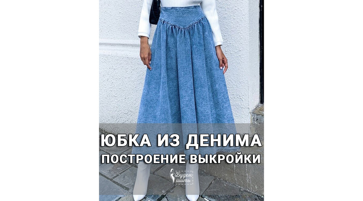 Обычные джинсовые юбки прямого кроя уже есть у всех. А как вам такой вариант? Показываю, как из основы прямой юбки можно построить такую модель. Это юбка конической формы с отрезной фигурной кокеткой, со сборкой и расклешением книзу. Отмечаю по центру переднего полотнища длину кокетки – 15см (можно выбрать любую длину, померить на себе, как больше нравится). По боковому шву – 6 см. Соединяю эти точки и отрезаю. Затем закрываю вытачку (склеиваю по краю). Это деталь кокетки переднего полотнища. На нижней детали отмечаю примерно равные отрезки - 4 шт. Разрезаю по ним. Пронумеровываю, чтобы не запутаться, отмечаю – где центр переда, где боковой шов. Теперь беру деталь с центром переда, приклеиваю по прямой линии. От нижней крайней точки откладываю 4 см, а от линии бедра – 2,5 см. Эти значения вы тоже можете взять произвольно, от них будет зависеть степень расклешения и количество сборки. К этим точкам прикладываю следующую деталь, закрепляю ее. И так со всеми остальными деталями. К боковом