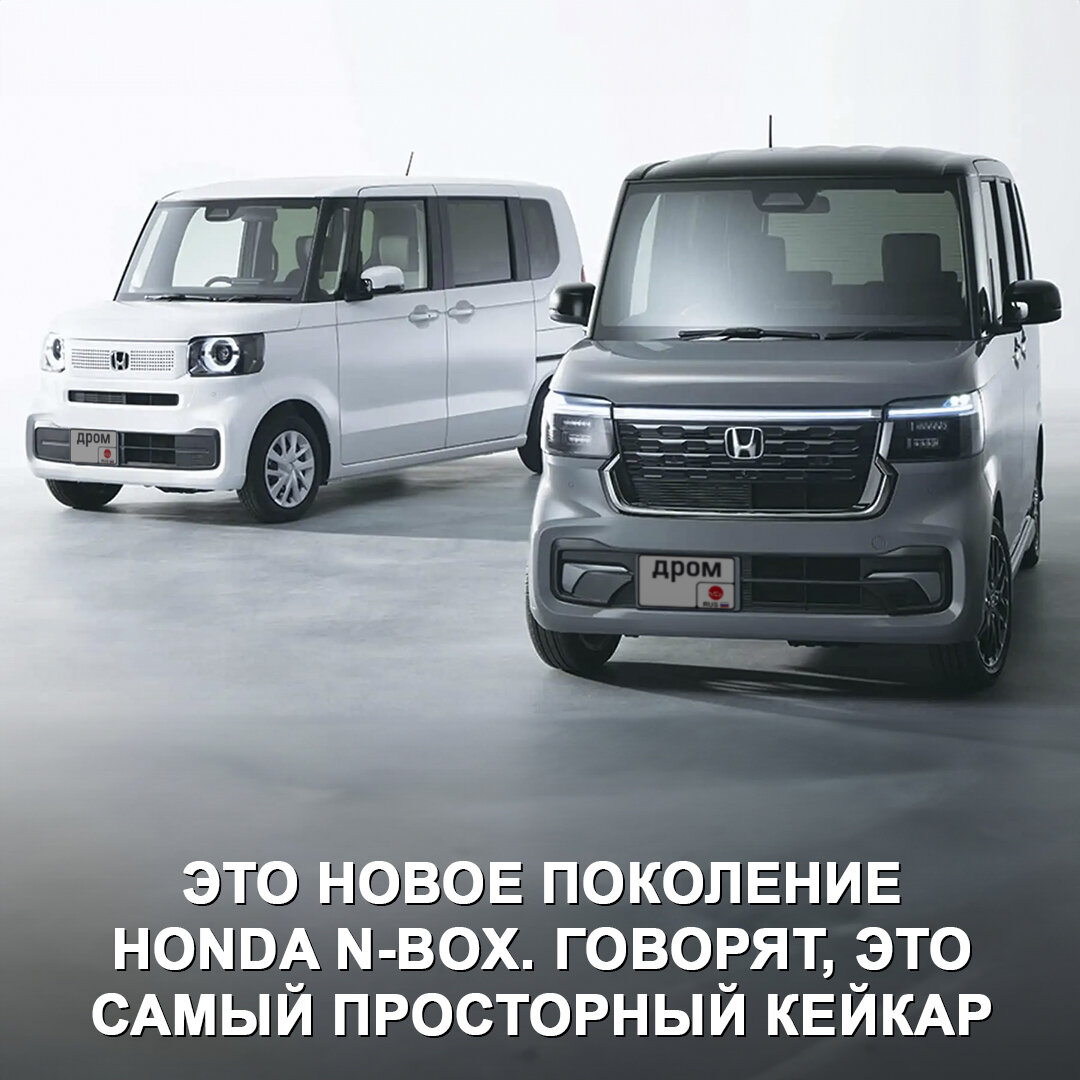 Honda показала новое поколение кейкара N-Box. Заявлено, что у него самый просторный салон в классе 😃 Внешне машина сохранила свои пропорции и квадратный дизайн, изменилась решётка радиатора, появились круглые LED-фары. Немного отличается передок в версии Custom, также для неё можно заказать чёрную крышу и кожаную обивку. Внутри теперь цифровая приборка 7" и мультимедиа 9". Также улучшена шумоизоляция, задний ряд складывается в ровный пол, переднее пассажирское кресло — в столик. Среди опций — адаптивный круиз, автоторможение и автосвет. Техника пока не раскрыта, из-за правил для кейкаров, возможно, осталась она без изменений: мотор 0,7 л на 58 л.с. или 64 л.с. (турбированный), а также вариатор и опциональный 4WD. Прошлый N-Box был самым популярным в своём классе на рынке, в 2022 году их продали более 200 000 шт. Новый разовьёт успех? 🤔 #дромновость #honda #nbox #япония #кейкар