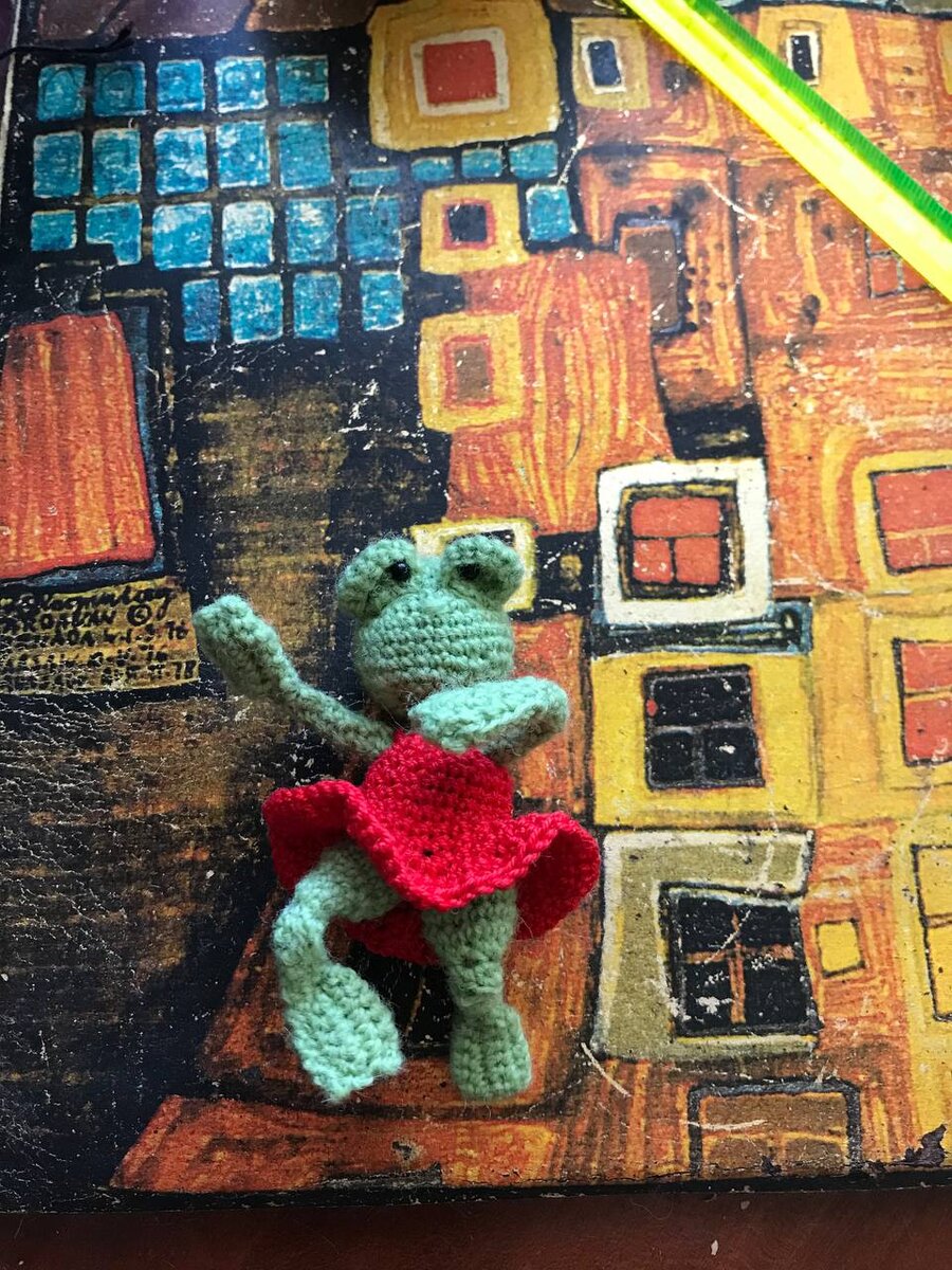 Описание Вот схема вязания крючком симпатичного сарафана для игрушки вязаной лягушки высотой примерно 9 см: Необходимые материалы: - пряжа хлопок мулине основного любого цвета на выбор (основной цвет для платья и можете добавлять нить другого цвета как контрастный цвет для бретелей и вышивки ) - Крючок, соответствующий весу вашей пряжи (обычно от 1,00 мм ) - игла для шитья и убрать концы пряжи - Ножницы - маленькая пуговица или бусинка для украшения (по желанию) Сокращения: Схема сарафана: 1. Пряжей основного цвета наберите цепочку 18 ВП 2. Ряд 1-3: СБН (=18 сбн) 3. Ряд 4: *5СБН в каждую петлю, ПР* (21сбн) 4. Ряд 5-7: СБН (21сбн) 5. Ряды 8: 1 ПР,1ПР3… (62сбн) 6. Ряд 9-12: СБН (62сбн) закрепите вязание и спрячьте нитку Лямки (сделайте 2): 1. Нитью контрастного или основного цвета, 12вп. Прикрепите лямки на сарафан Декор Для украшения сарафана вы можете добавить крошечную пуговицу или бусину на лиф сарафана или использовать пряжу контрастного цвета, чтобы добавить декоративны