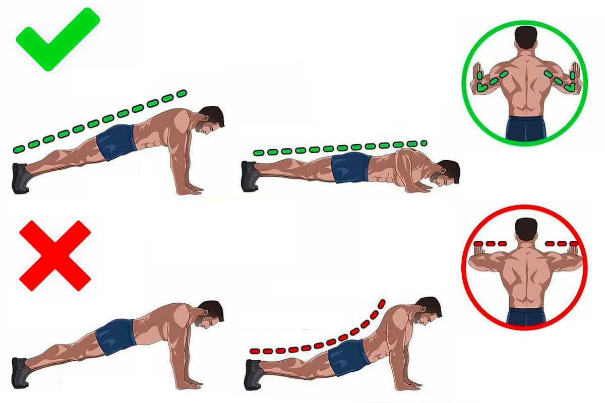 Отжимания – это силовое упражнение с весом собственного тела, которое является ключевым для развития мышц верхней части тела. Отжимание является популярным упражнением с весом собственного тела. Отжимания помогают задействовать все группы мышц от шеи до пальцев ног, и в особенности укрепить грудные мышцы, плечевой пояс, трицепсы и пресс. Правильная техника во время классических отжиманий от пола: 1. Тело образует прямую линию, таз не уходит вверх и не прогибается вниз. 2. Мышцы живота напряжены, но дыхание не задерживается. 3. Голова находится в нейтральном положении, не смотрит вниз, но и не задирается вверх. 4. Ладони находятся строго под плечами, не выходят вперед. 5. Ладони смотрят вперед, параллельно друг другу. 6. Локти повернуты назад на 45 гр., они не расставлены в сторону. 7. На вдохе сгибаем локти и опускаем корпус параллельно полу, сохраняем прямую линию тела. 8. Отжимания от пола выполняется с полной амлитудой, т.е. тело опускается максимально низко. 9. Локти должны обра