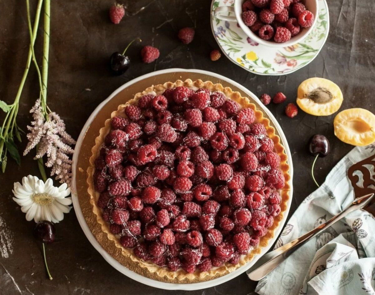 Пирог с малиной готов к подаче! Этот ароматный и сочный десерт будет прекрасным заключением любого обеда или ужина. Приятного аппетита!
