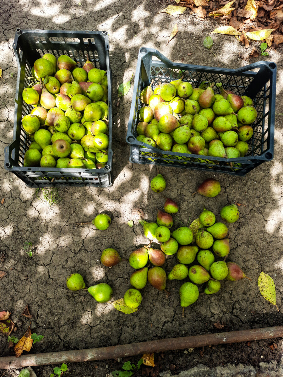 Но! В этом году у нас оооочень много груш. Деревца небольшие, но на них такое количество груш, что мы со страхом смотрели за снижением веток к земле под тяжестью.... Подпереть их было просто невозможно...