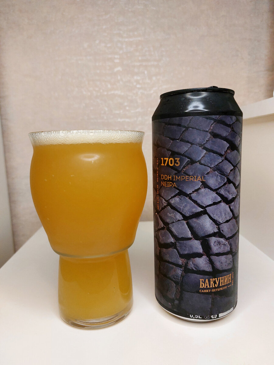 Изготовитель: ООО "Пивоварня "Мюнхель", г. Санкт-Петербург. На сайте пивоварни о напитке можно узнать лишь то, что он не входит в список регулярных сортов и занесён в "архив". На UNTAPPD пишут следующее: "В середине сентября мы тусовались с нашими друзьями из Брайтона, Англия: командой из Lost + Found. На окраине осеннего Санкт-Петербурга зародилось наше первое российско-британское сотрудничество. Основываясь на опыте наших коллег по сохранению сочности IPA, мы не использовали хмель, как обычно. Вместо этого мы использовали силу его природной свежести и лупулина в водовороте, а также пару раундов сухого охмеления. В итоге мы получили сухой, хмелевой нектар с изысканной горчинкой, насквозь пропитанный цитрусовыми и фруктовыми ароматами Citra, Mosaic, El Dorado и Galaxy. В поисках названия мы обращаемся к магии чисел - году основания нашего родного города: 1703. Пейте ровно в 17:03." Плотность: 18.5%. Горечь: 40. Состав: вода подготовленная (исправленная), солод пивоваренный ячменный, хм