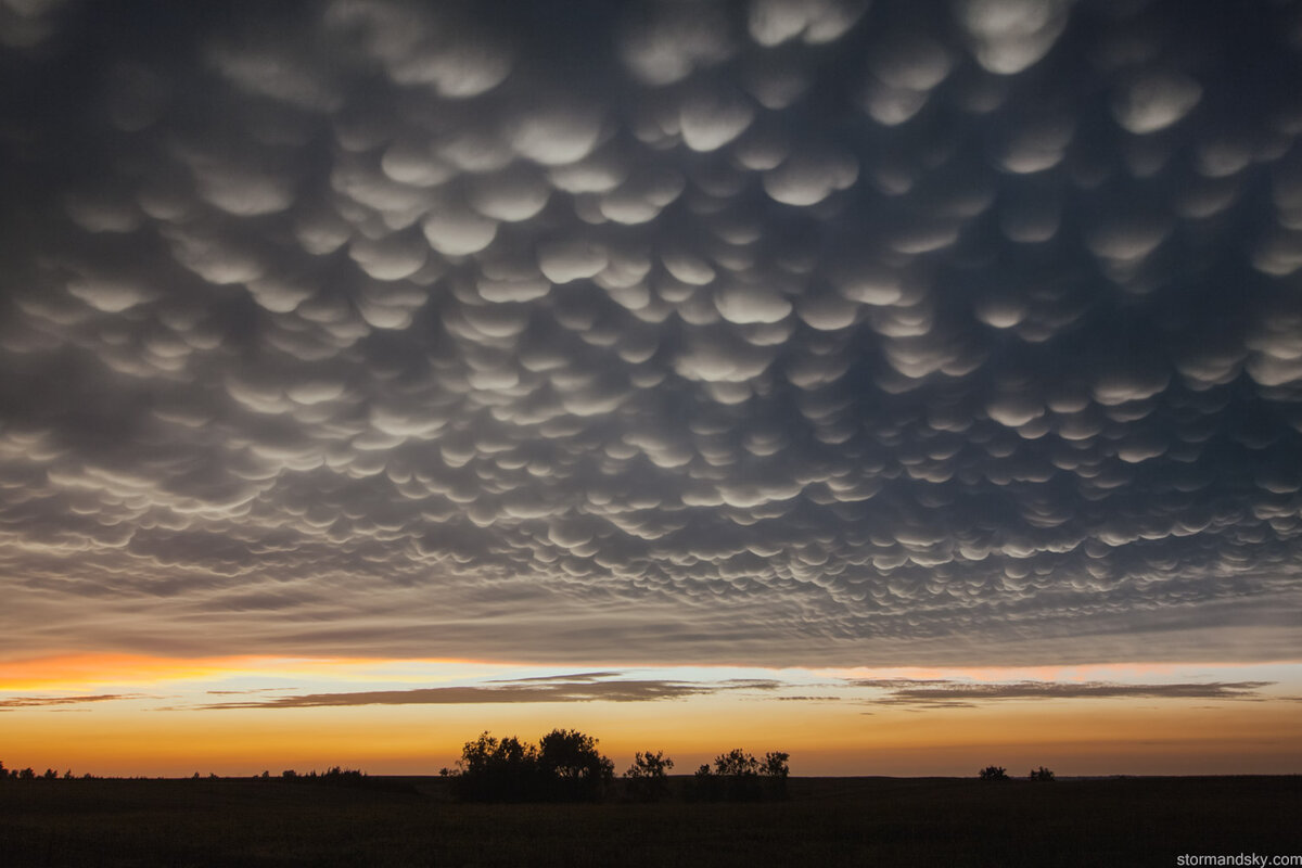 Облака мамматус - одни из самых редких видов облаков, основание которых имеет специфическую ячеистую или сумчатую форму. Иностранное название - mammatus, что в переводе на русский язык что означает "вымя". Поэтому эти облака ещё называют вымеобразными облаками. Чаще всего облака можно встретить в тропических широтах, что связано с образованием тропических циклонов (влажный воздух поднимается наверх, а сухой воздух опускается вниз). По своей сути эти облака являются разновидностью облаков кучево-дождевого типа, хотя могут происходить и от других облаков. Размер ячеек в таких облаках может варьироваться от 1 до 3 километров. Окраска облаков зависит от того, как попадают на эти облака солнечные лучи, можно встретить как золотистые вымеобразные облака, так и серо-голубые. Скопление мамматусов может сохраняться на небе от 15 минут до нескольких часов! Из чего же состоят мамматусы и что является причиной их образования? Вымеобразные облака состоят из кусочков льда (кристалликов льда), но та