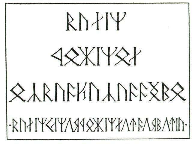 Могила гнома Балина (один из героев книги «Хоббит») в первой части трилогии «Властелин колец» Толкиена. На могиле рунами написано дважды одно и тоже на языке гномов и на языке людей: «Балин Фундинул Узбад Казад-думу» и «Балин, сын Фундина, государь Мории». Ну само-собой это если перевести на русский с английского. При написании книги автор полностью составил несколько языков, в том числе их письменность и произношение.