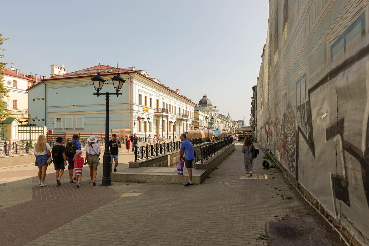 Я дважды бывал в столице Татарстана и хочу поделиться впечатлениями. Конечно, Казань один из самых благоустроенных городов России (наряду с Москвой и Питером), но нет пределах совершенству. Сегодня расскажу о главных недостатках, которые в Казани следует искоренить, чтобы город стал еще более привлекательным для туристов. 1). Рано темнеет. Казань находится в московском часовом поясе, между тем расположена на 800 километров восточнее. Например, 5 августа, когда я пишу эту статью, в Москве солнце заходит в 20:30, а в Казани в 19:44. При этом, в 500 километрах от столицы Татарстана расположена Уфа, которая живет даже не Москва +1 час, а Москва +2 часа. И там солнце зайдет аж в 21:12. 2). Руины. К сожалению, в Казани, как и в Москве, множество полузаброшенных зданий. Вот это - улица Баумана, главная пешеходная улица Казани, ее визитная карточка. Справа попали ужасные развалины домов 32 и 34, уже долгие годы завешенные строительной сеткой. И таких примеров множество. Например, Настоятельски