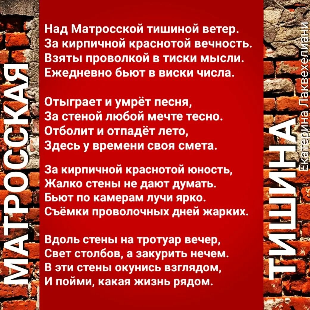 К современному миру я бы применила выражение "улыбаемся и машем". И вовсе не потому, что мы все безоблачно-позитивные, а потому, что мы должны этот "позитив" транслировать в мир! А по факту это театр! Недавно я уже говорила об этом в рамках темы смерти. Мы так боимся о ней говорить, что скоро она исчезнет (шутка!) Итак, почему Матросская тишина? Дело всё в том, что я живу неподалёку, и время от времени прохожу эти стены. И, знаете, вот каждый раз смотрю-смотрю... Там очень тихо, на этой улице. Иногда встретишь пару человек, есть трамвайные пути, уходящие за поворот, но трамвая я там так и не видела. А ещё там есть странное чувство внутри. Хочется не нарушать этот ритм и невольно замедляешься. Молчать хочется! Вот ведь правда "тишина". Удивительное совпадение с названием. Я даже пару раз остановилась и осмотрелась. Напротив стоит постройка советских времён. И тоже по-своему застывшая. Всё-таки стены многое знают. Они как и деревья – немые свидетели многих событий. Собиратели атмосферы.