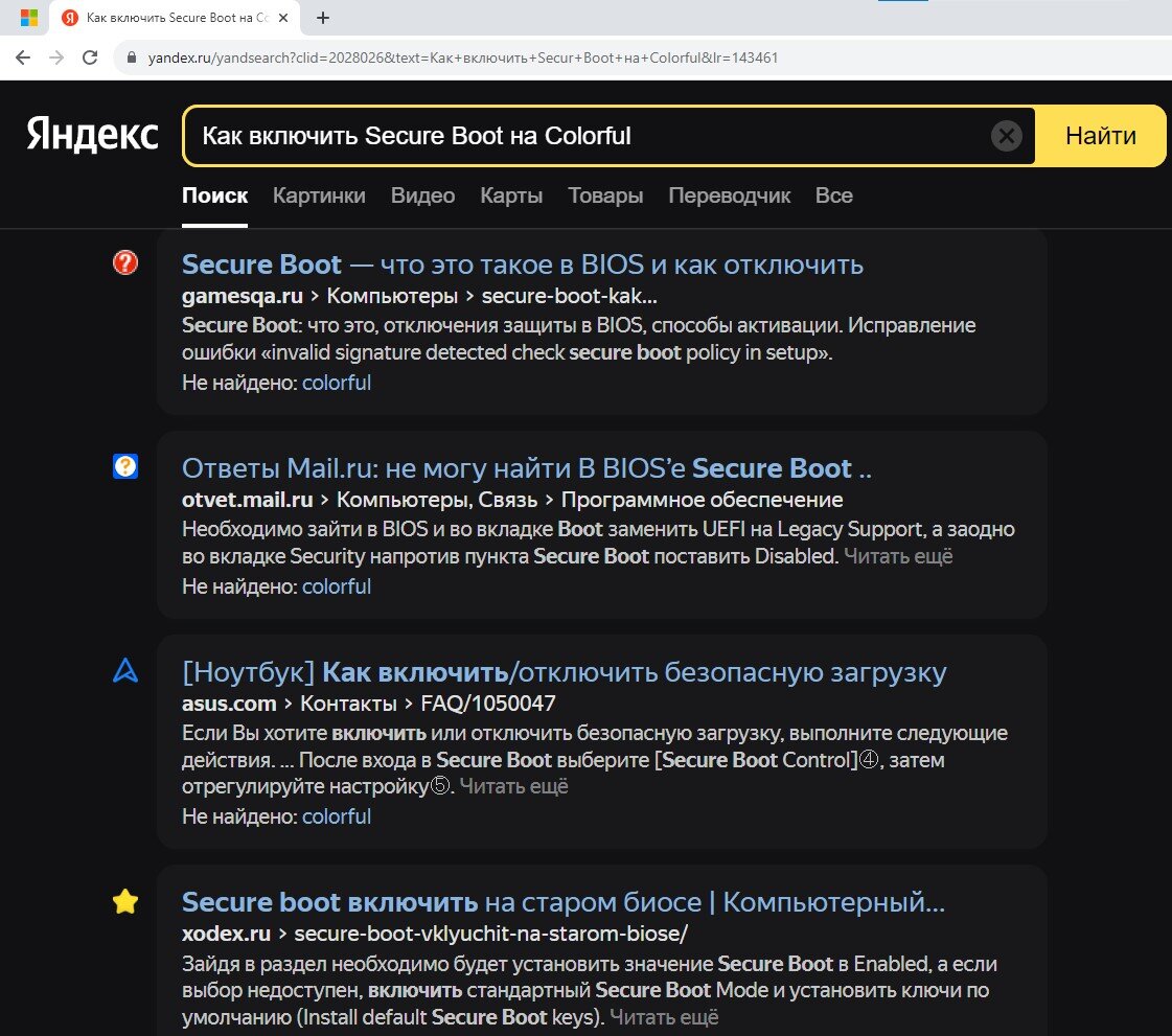 Искать в этих ваших инторнетах Как включить Secure Boot на Colorful, бесполезно, ты не чего не не найдёшь.