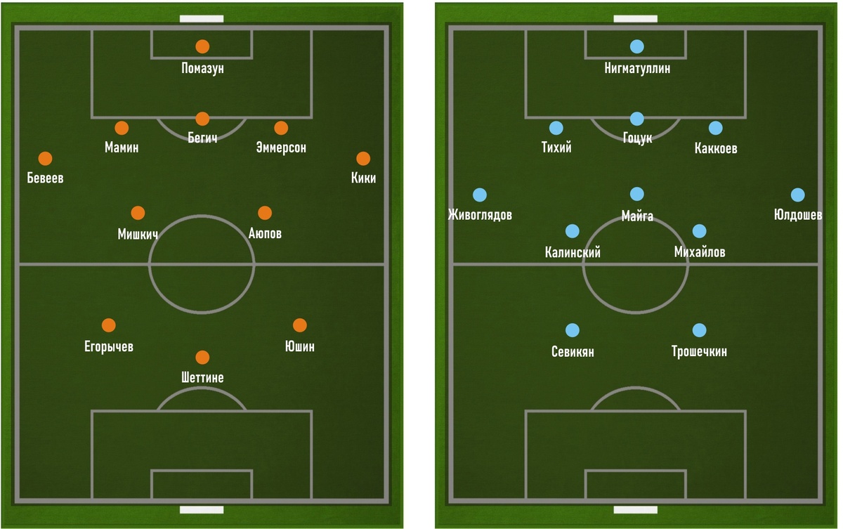 Составы команд. Травмированного Филипенко заменил Эммерсон (правильно с двумя «м»). Шеттине вышел вместо Каштанова, видимо, португалец больше понравился тренеру по игре с «Локомотивом». «Нижний» вышел с двумя нападающими, один из которых Трошечкин, всегда игравший центрального полузащитника. Изменения по ходу игры На 73-й минуте, поняв, что можно и до нулевой ничьи доиграться, Гончаренко перешёл на схему в 4 защитника. Бевеев ушёл, Мамин стал играть правого защитника и в целом не очень справился, хотя до этого был лучшим. «Нижний» ничего менял - чисто по позиции. Причём на смену Трошечкину вышел Жигулёв. Когда я спросил Юрана, почему в атаку выходят полузащитники, тот сказал, что Трошечкин и так почти нападающий и там ранее играл, а Жигулёв вовсе не нападающим вышел, а атакующим полузащитником. В остальном краткий обзор в видеофайле. На пресс-конференции Гончаренко выглядел сдержанно разочарованным. Первое, что я его спросил, был вопрос про настрой команды. Первую половину первого тайм