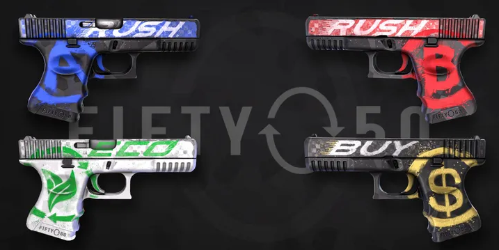 Художник под ником cimota добавил в Мастерскую Steam небольшую коллекцию скинов для CS:GO и Counter-Strike 2, которые помогают решить, какой раунд нужно провести. С его дизайнами Glock-18 и USP-S заменяют монетку в спорных ситуациях. Скины из коллекции с говорящим названием FIFTY 50 двусторонние. К примеру, на одной стороне Glock-18 нанесена фраза Rush B, а на другой — Rush A. Если команда не может выбрать точку для быстрой атаки, достаточно подкинуть пистолет и посмотреть, какой стороной вверх он упадет. Эта версия также доступна в Counter-Strike 2. Автор коллекции также добавил в Мастерскую Steam вариант Glock-18, который помогает решить, делать ли экономический раунд или тратить деньги. Для стороны защиты cimota подготовил USP-S с надписями Stack A или B. Каждый пистолет получил юмористический трейлер с наглядными примерами применения.