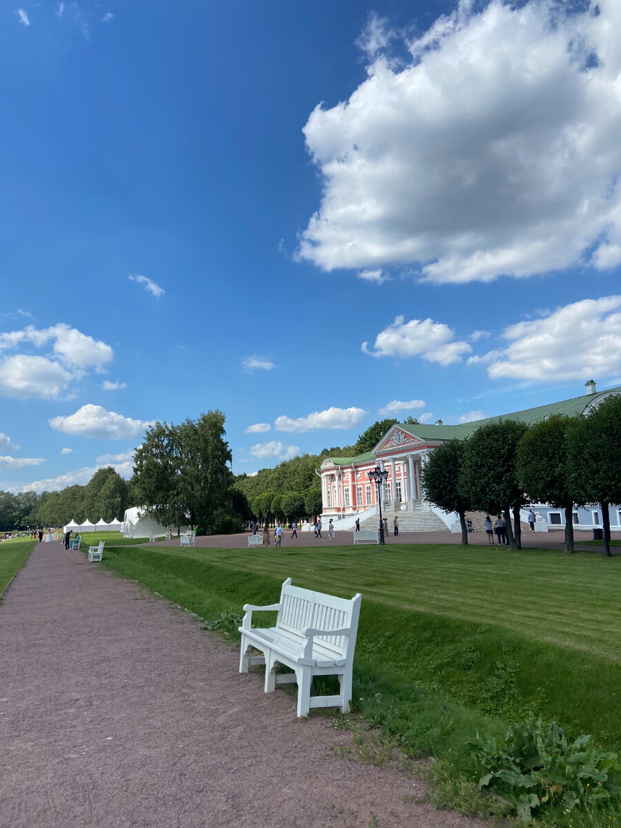 Любимое с детства место на востоке Москвы. В любое время года оно очаровательно. А летом пользуется особым спросом. Сейчас идёт реконструкция главного входа на территорию. Поэтому перед кассами тесновато людям и машинам. Основное здание комплекса -Дворец. Хорошо виден с противоположного берега пруда. Вдоль берега теперь поставили лавочки. А зелёный и ровный газон радует глаз Швейцарский домик Голландский домик самый ранний из сохранившихся увеселительных павильонов Кускова. Слева и справа от домика разбиты голландские сады. В одном сейчас пытаются расти кабачки и капуста, в другом неплохо растут разнообразные цветы. Вход к огородам с обратной стороны здания Под огромными липами и дубами можно скрыться от зноя, а также дойти до Эрмитажа Кстати, кирпичи на Голландском домике нарисованы Продолжение следует...
