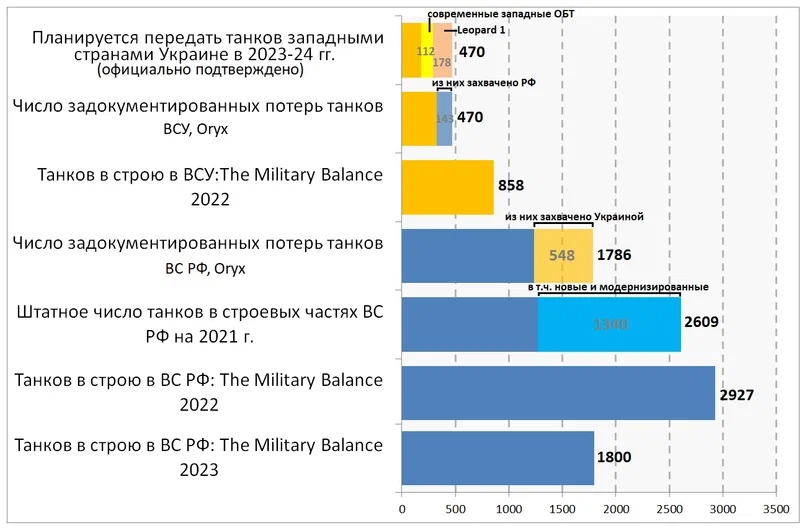 The Military Balance 2023 приводит следующие цифры
